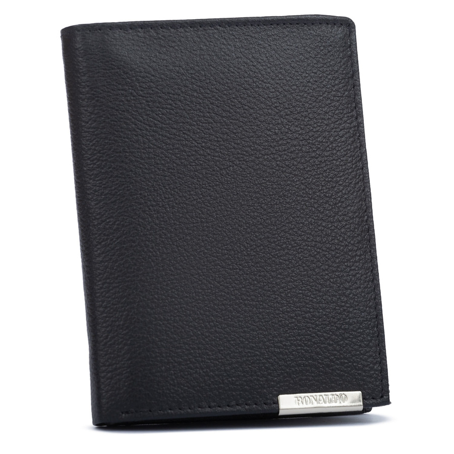 Duży, skórzany portfel męski w czarnym kolorze bez zapięcia zewnętrznego - 4U Cavaldi