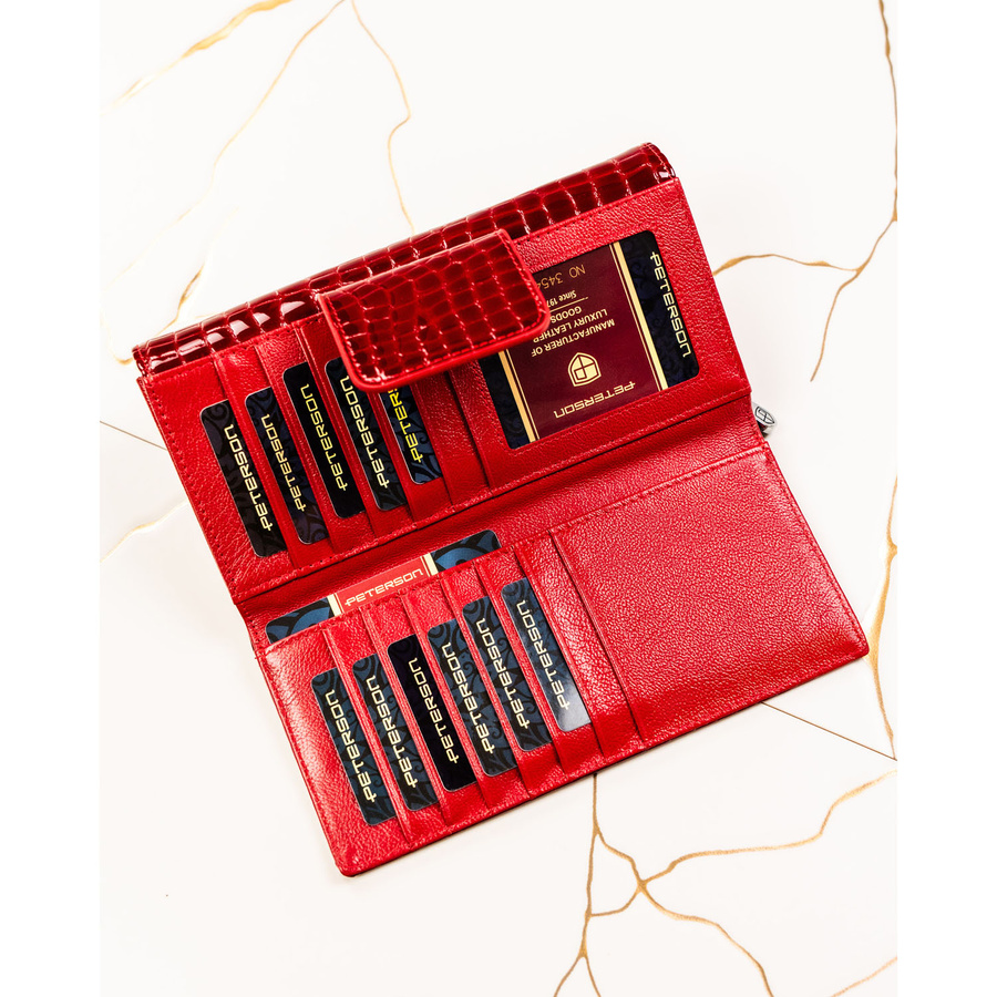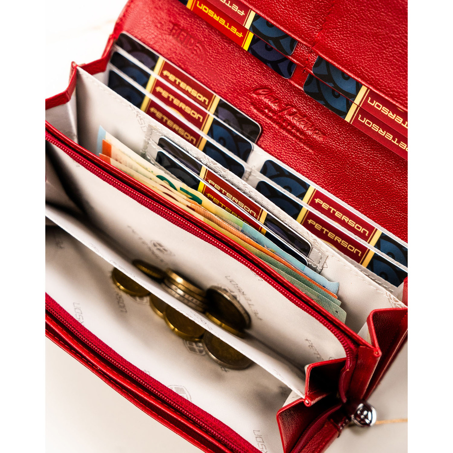 Klasyczny, duży portfel damski ze skóry naturalnej w czerwonym kolorze - Peterson