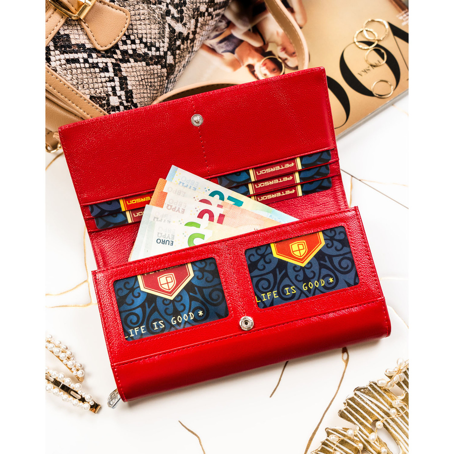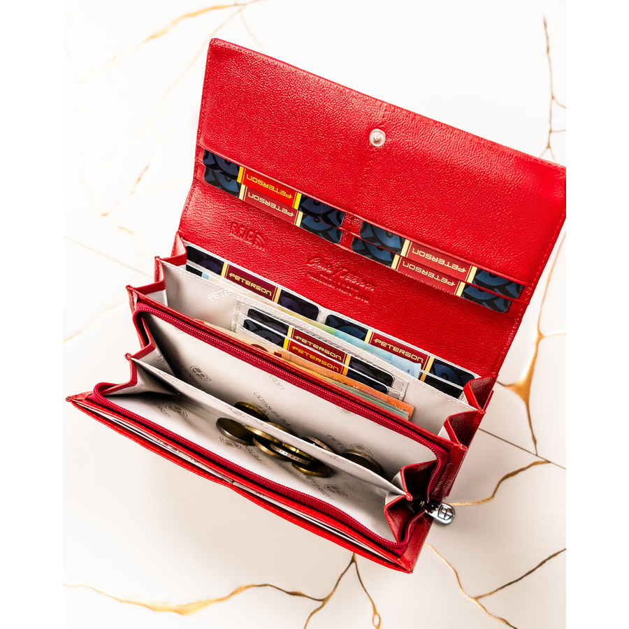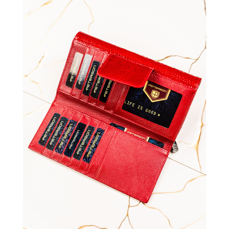 Duży portfel damski ze skóry naturalnej w czerwonym kolorze zamykany na zatrzask - Peterson