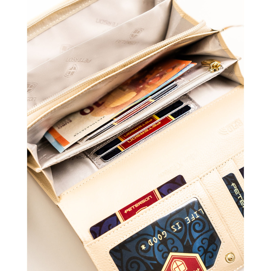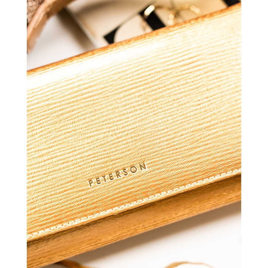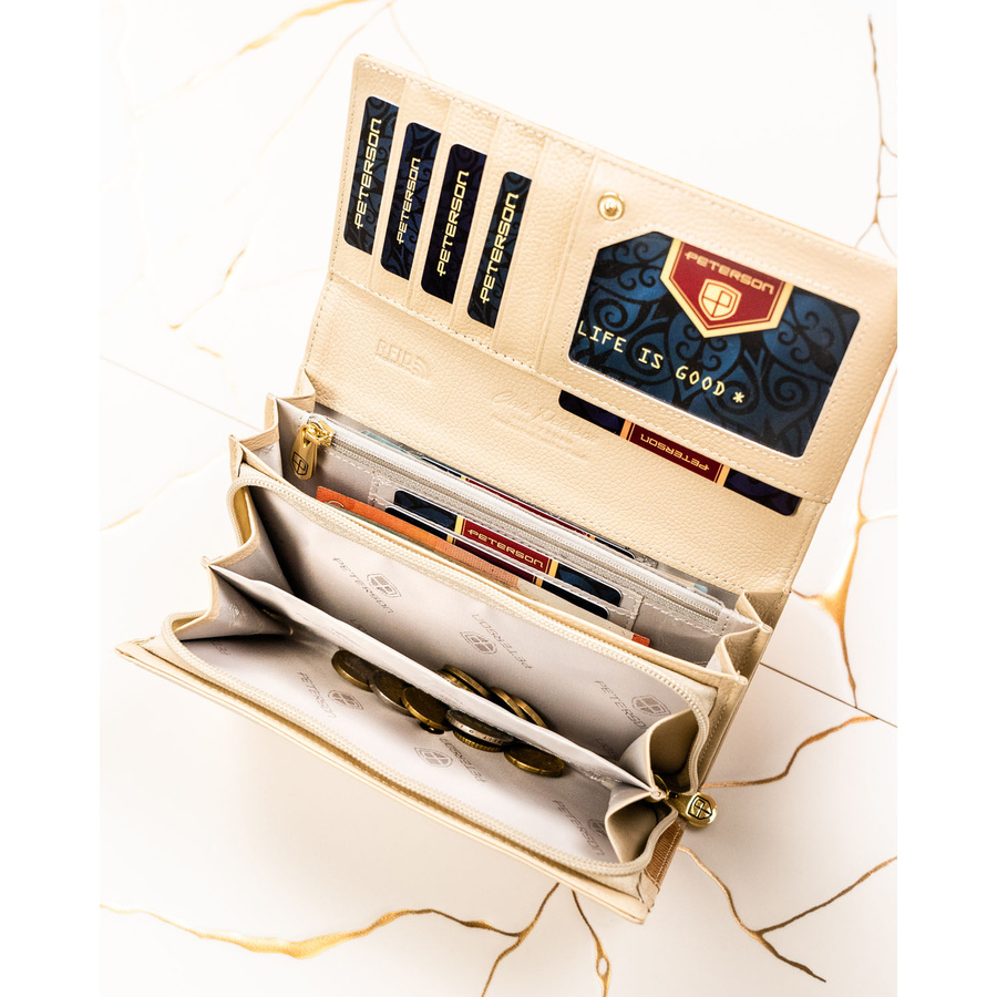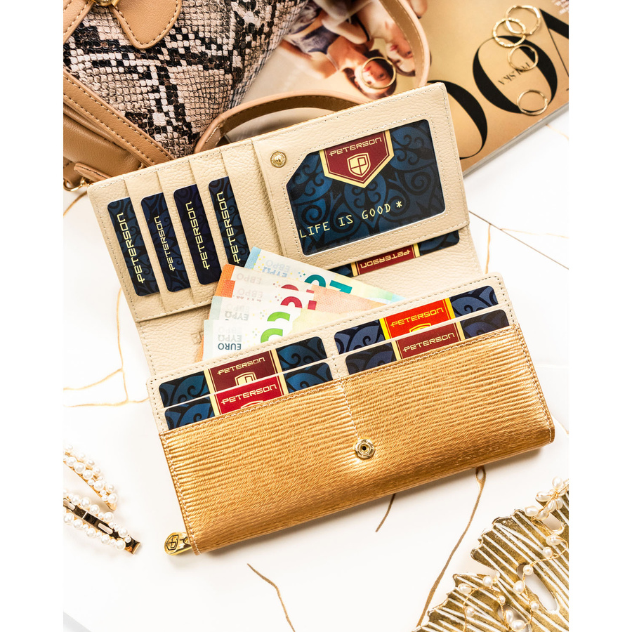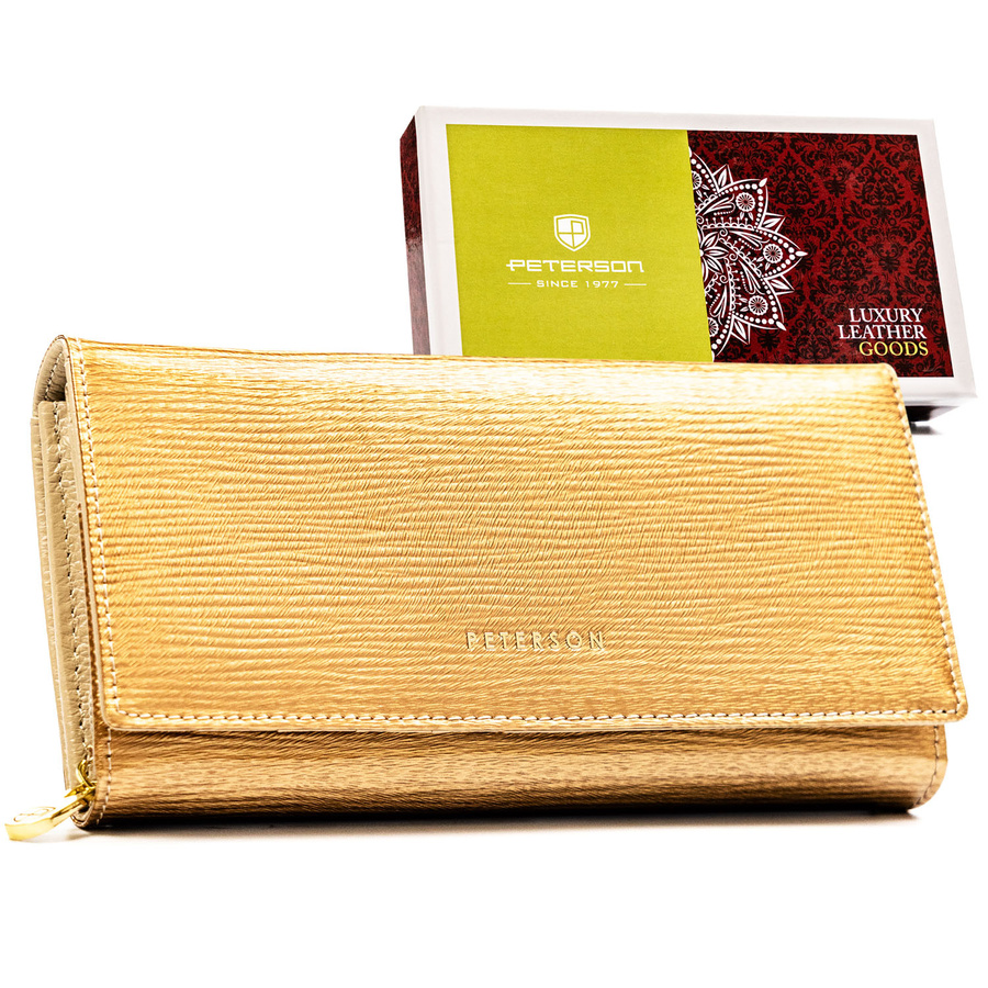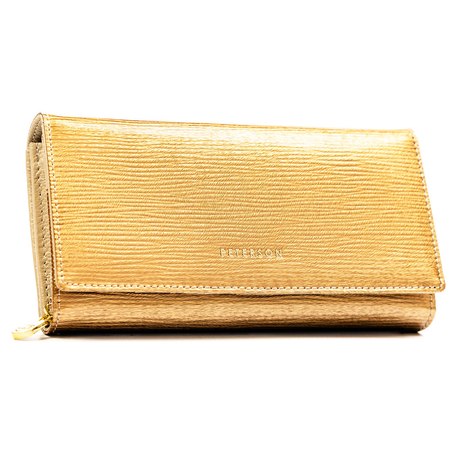 Duży, złoty portfel damski ze skóry naturalnej zamykany na zatrzask - Peterson