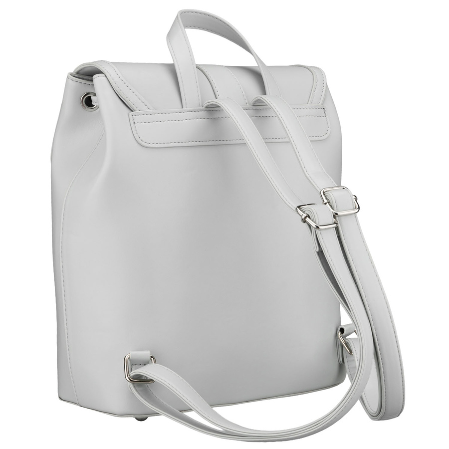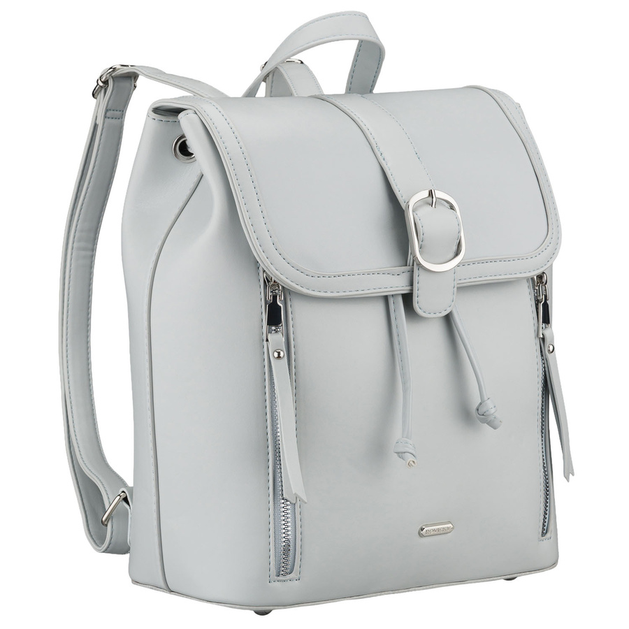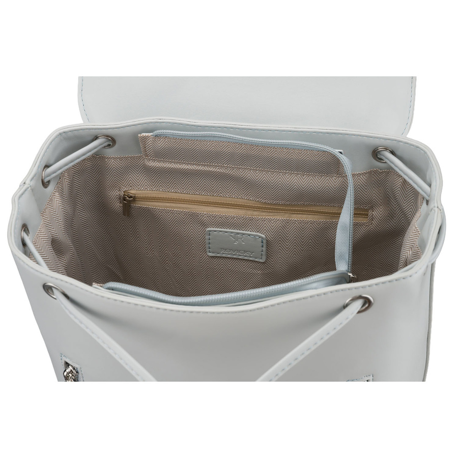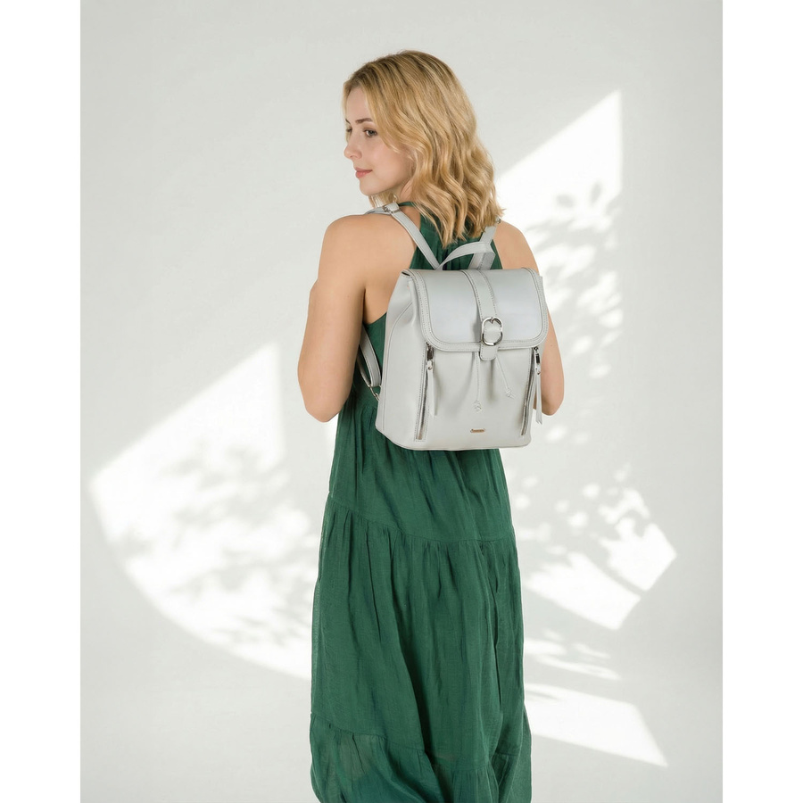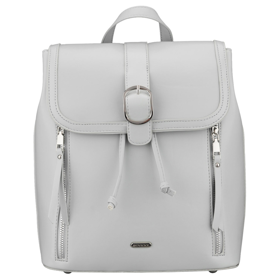 Pojemny plecak damski ze skóry ekologicznej w szarym kolorze wyposażony w nóżki ochronne - Rovicky