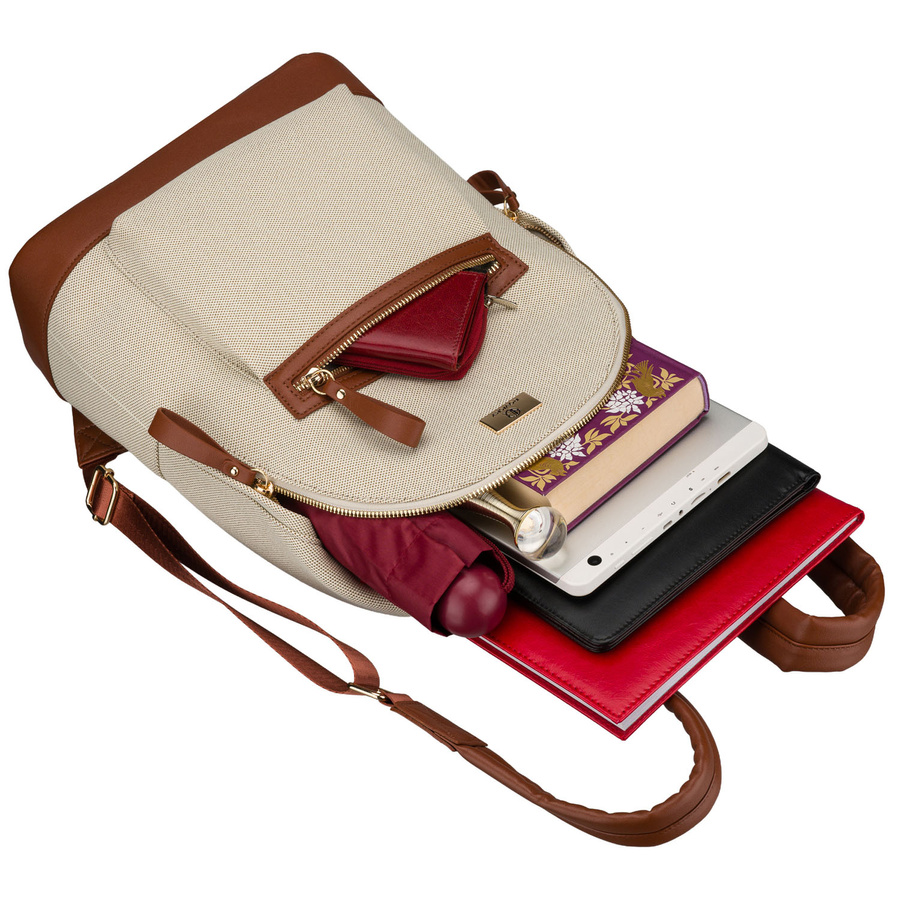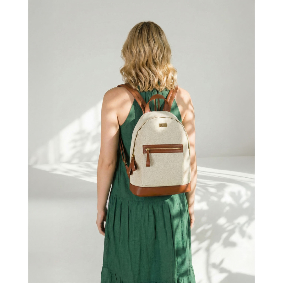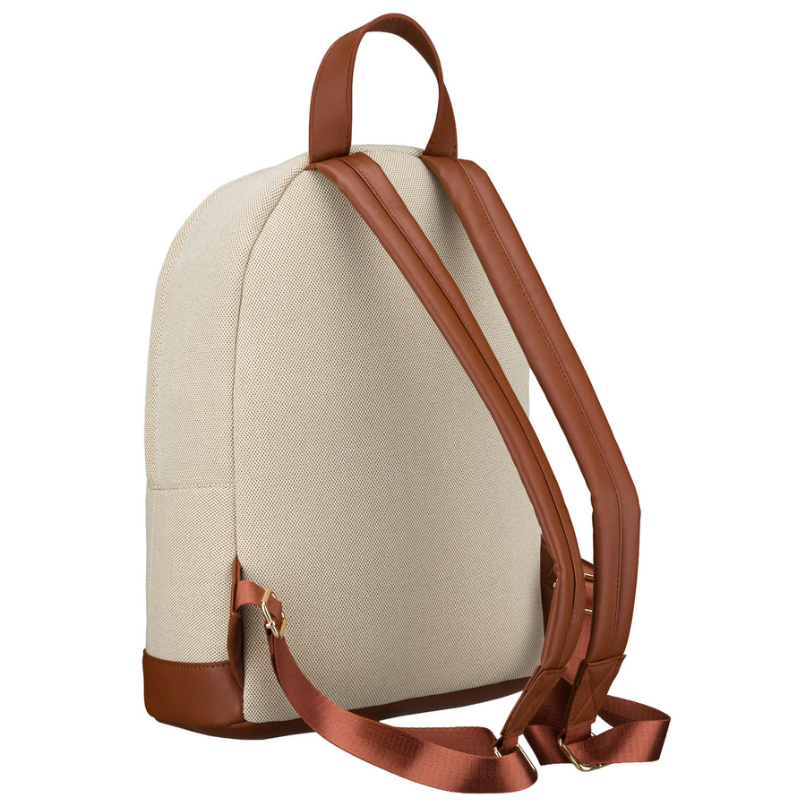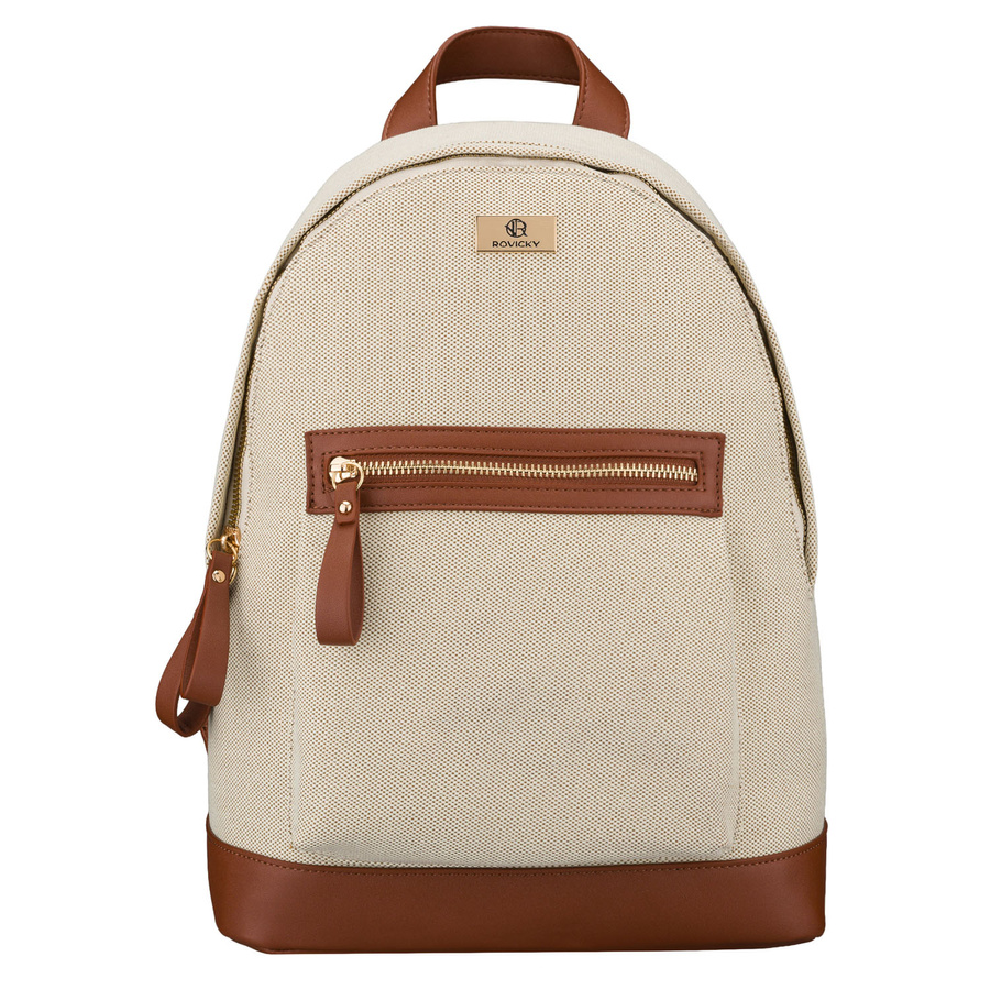 Płócienny plecak damski w beżowo-brązowym kolorze z kieszenią zewnętrzną - Rovicky