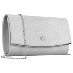 Elegancka kopertówka damska w srebrnym kolorze wykonana ze skóry ekologicznej, zawieszona na łańcuszku - Rovicky