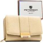 Beżowy portfel damski wykonany ze skóry ekologicznej o lekko prążkowanej fakturze, zamykany zatrzaskiem - Peterson