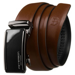 Elegancki pasek męski ze skóry naturalnej w brązowym kolorze z automatyczną, srebrną klamrą - Peterson