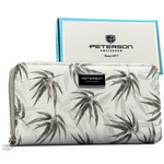 Szary portfel damski w typie piórnika w roślinny wzór, wykonany ze skóry naturalnej i ekologicznej - Peterson