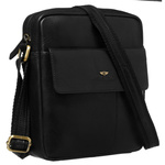 Dwukomorowa, czarna listonoszka męska ze skóry naturalnej zawieszona na regulowanym pasku - Peterson