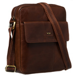 Miejska torba męska ze skóry naturalnej w brązowym kolorze, zawieszona na regulowanym pasku - Peterson